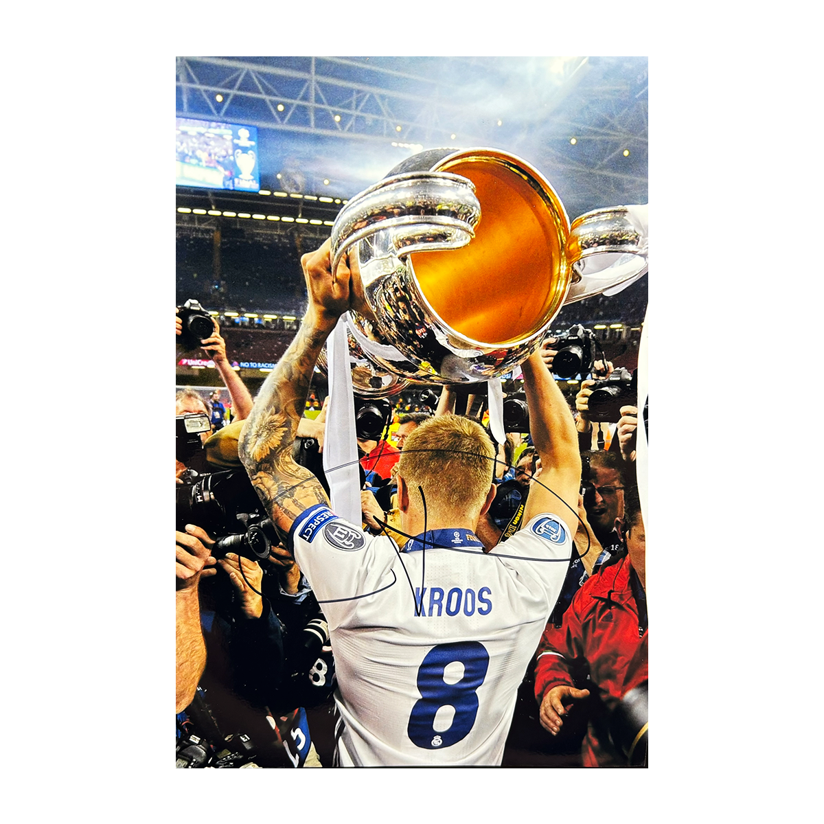 This Real Madrid A4 photo was signed by Toni Kroos.